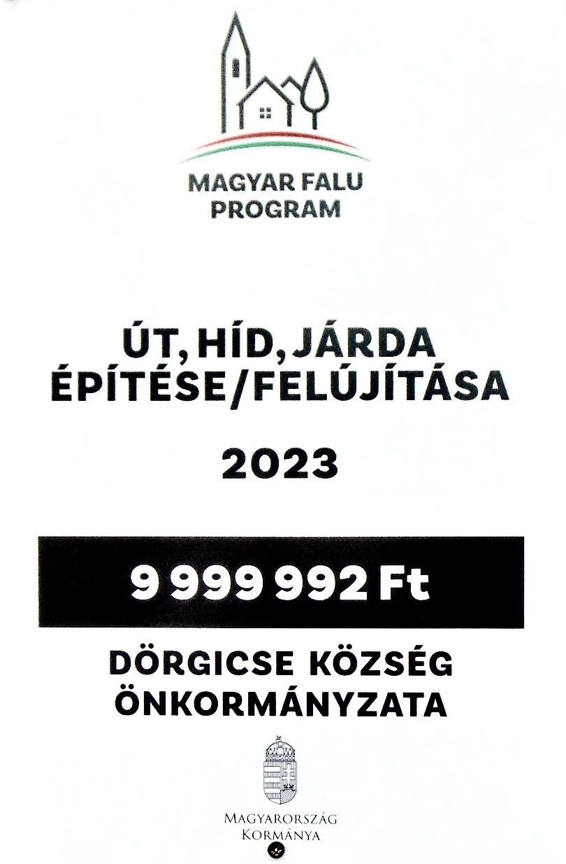 A Miniszterelnökség Támogatásával a Magyar Falu Program keretében 2023-ban meghirdetett Út, híd, járda építése / felújítása - 2023 című MFP-UHJ/2023 kódszámú nyertes pályázat.